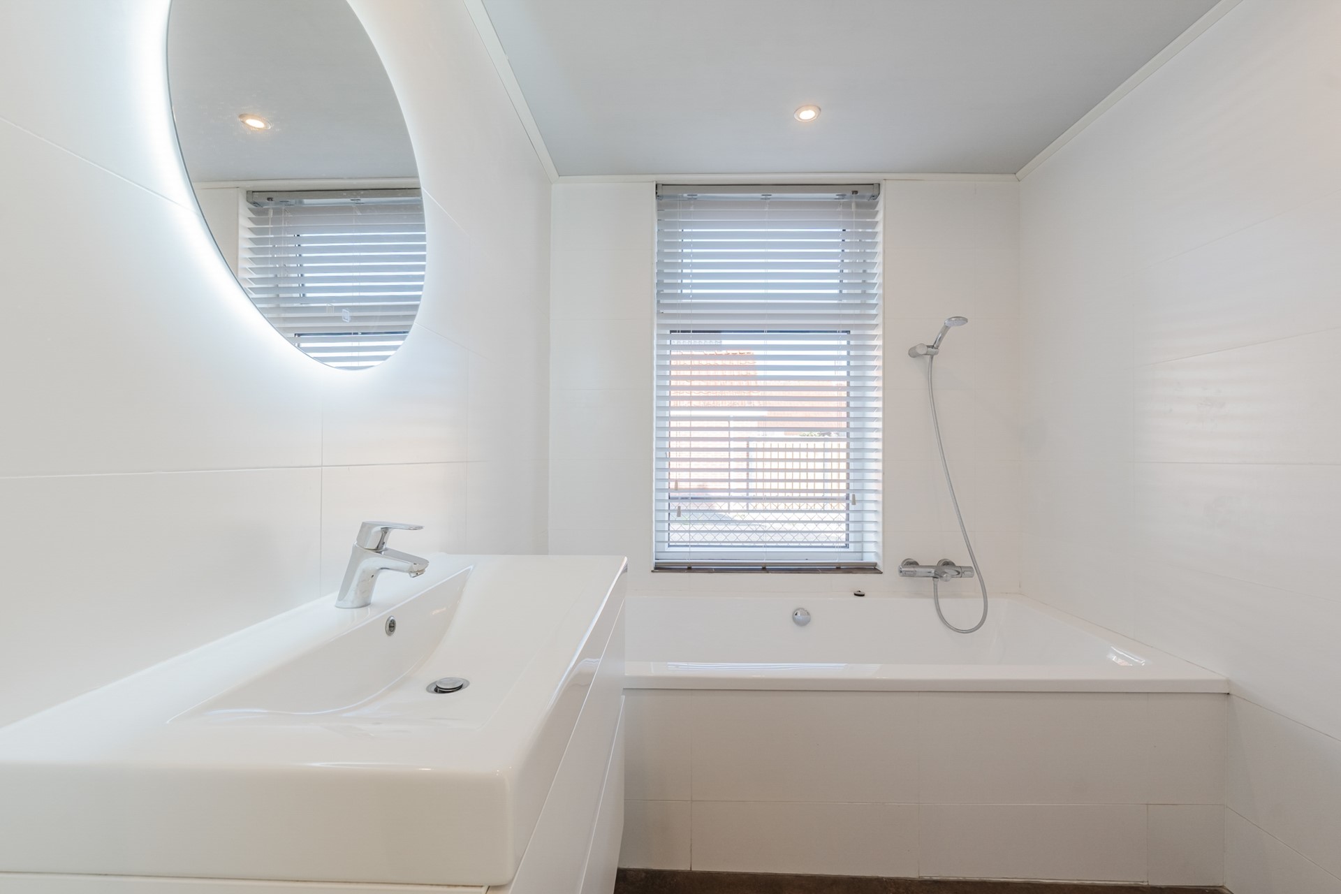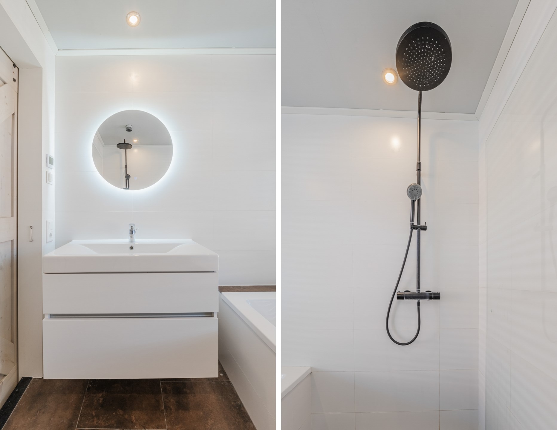 - Badkamer met ligbad, wastafelmeubel, douchehoek en verwarmd middels elektrische vloerverwarming