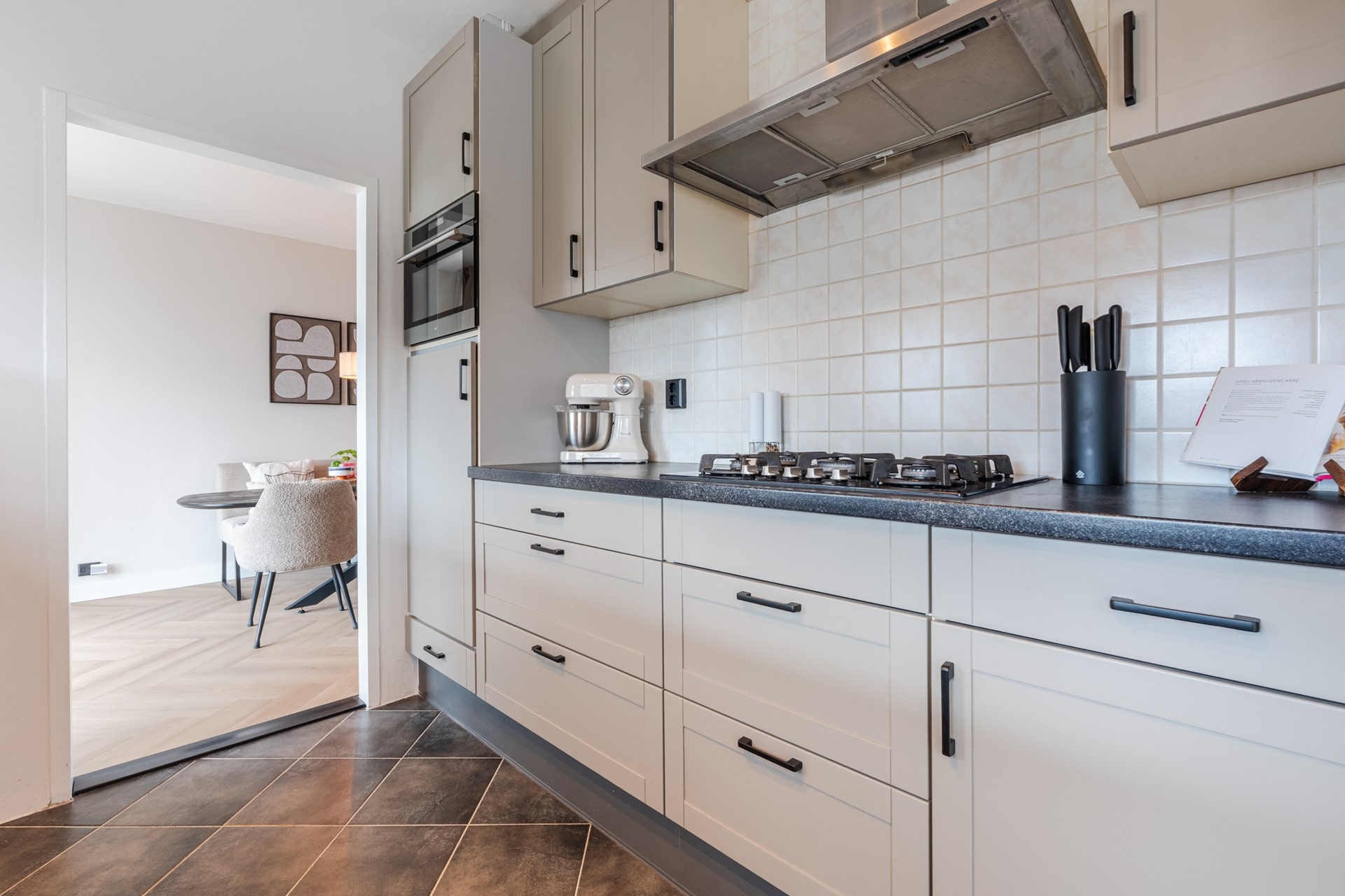 - Keuken voorzien van diverse inbouwapparatuur als: vaatwasser, 5-pits gaskooktoestel, RVS schouw, koelkast en combimagnetron