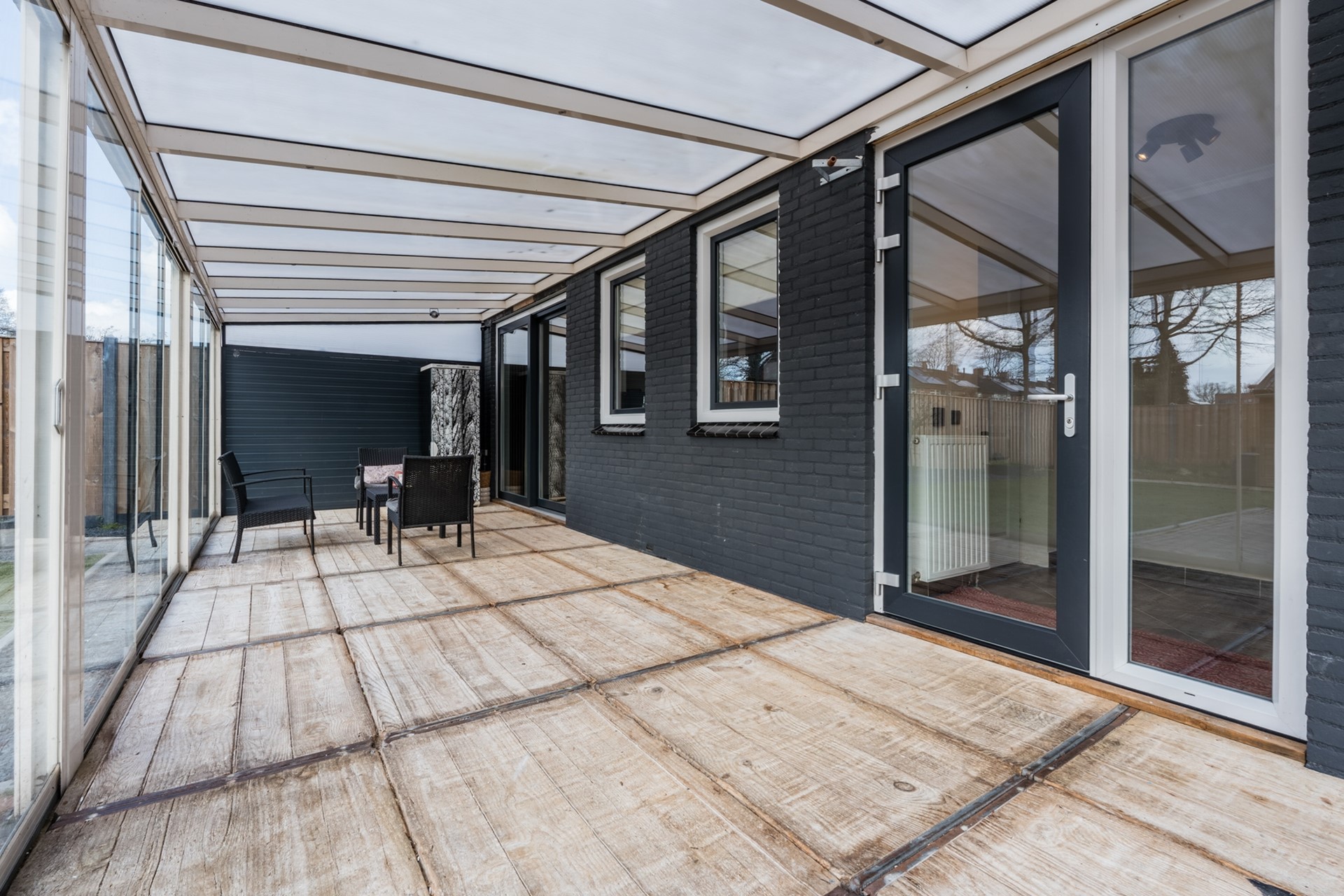 - Royale serre achter de gehele pui van de woning met glazen schuifwanden