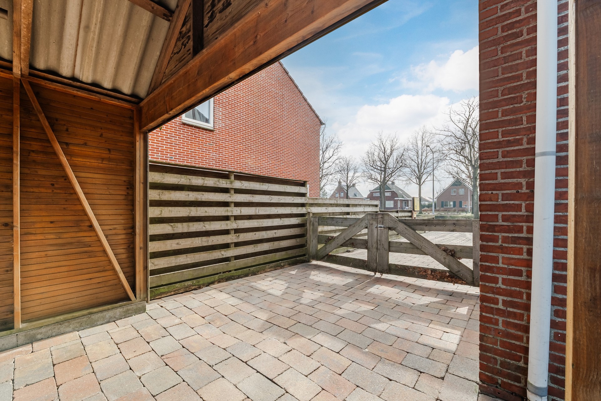 - Houten garage met een carport
