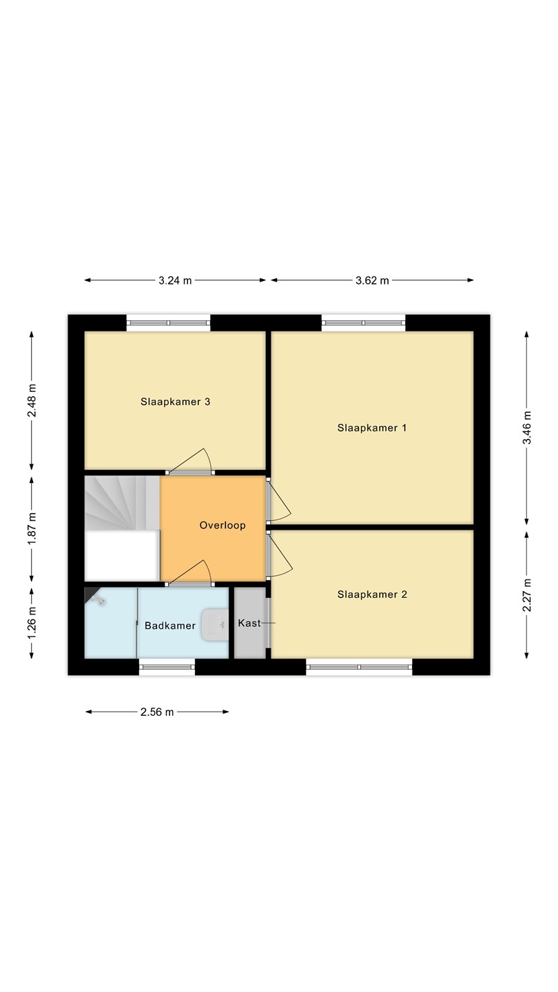 - 3 Slaapkamers waarvan 1 met een vaste kast